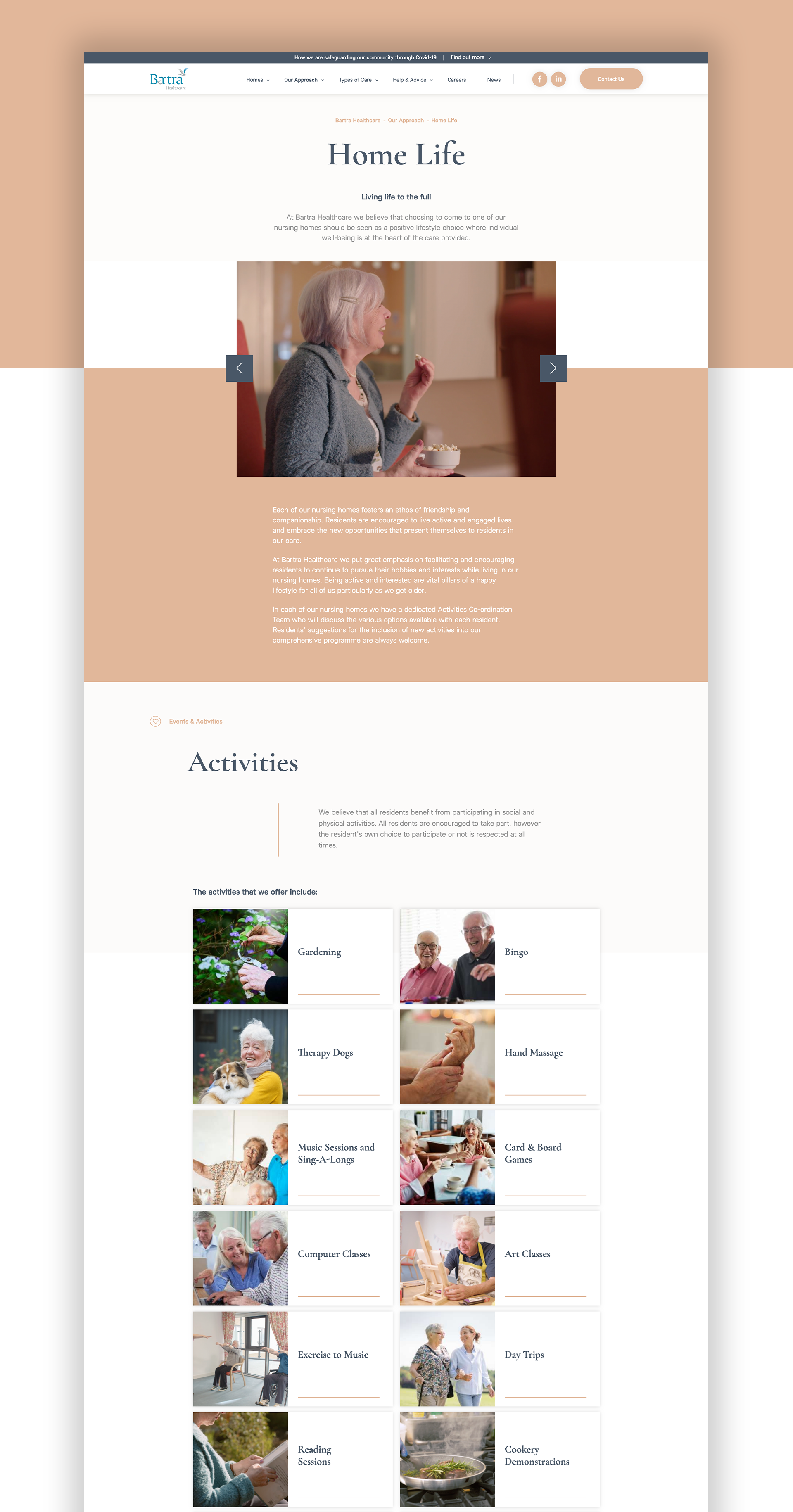In order to showcase the premium quality of the nursing homes, we redesigned the Bartra Healthcare website, giving it a refreshed and modern look. Alongside this, we directed and produced several videos for the website which give excellent insights into the quality of care provided at Bartra Healthcare.