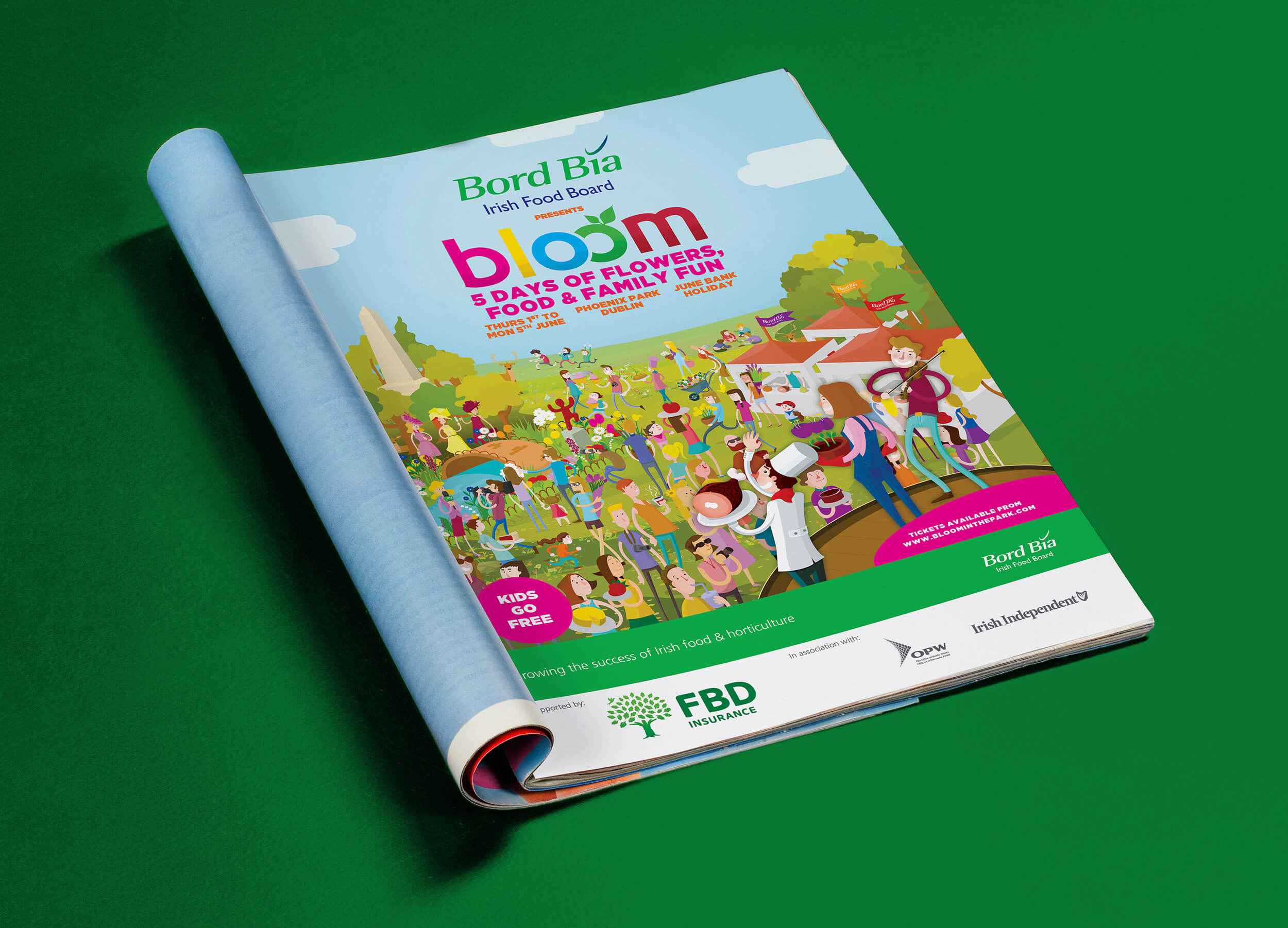 Bloom was a concept developed by Bord Bia over a decade ago. Idea created the name and branding for this hugely successful annual event and we have worked with the team in Bord Bia on an annual basis for the last 11 years developing advertising concepts, illustrations, radio ads, brochures, exhibition stands, websites and on and off-line marketing collateral.