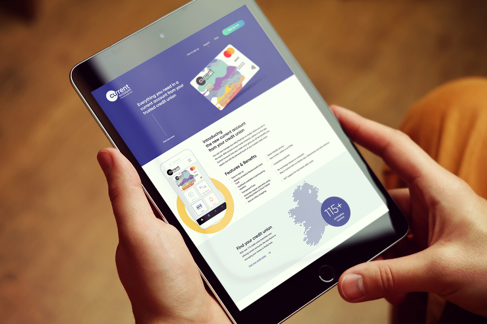 We also centrally produced and distributed a suite of personalised marketing materials to each Credit Union so that they could promote Current Account to their members in 115 branches throughout the country. As part of the Current Account digital presence and strategy, we designed & developed the currentaccount.ie website, the objective of which is to filter traffic and drive members to individual credit unions to sign up for this new service.