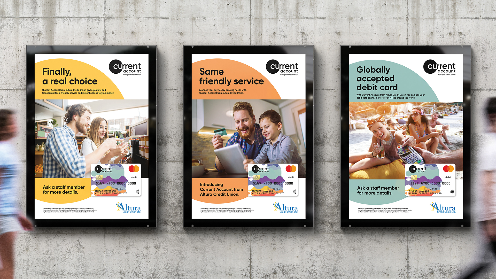 In the development of the Current Account brand, Idea created a name and tagline for Current Account, as well as brand identity, brand definition and pre-launch marketing strategy. We then created the design of the Current Account Mastercard debit card, the most tangible part of Current Account.