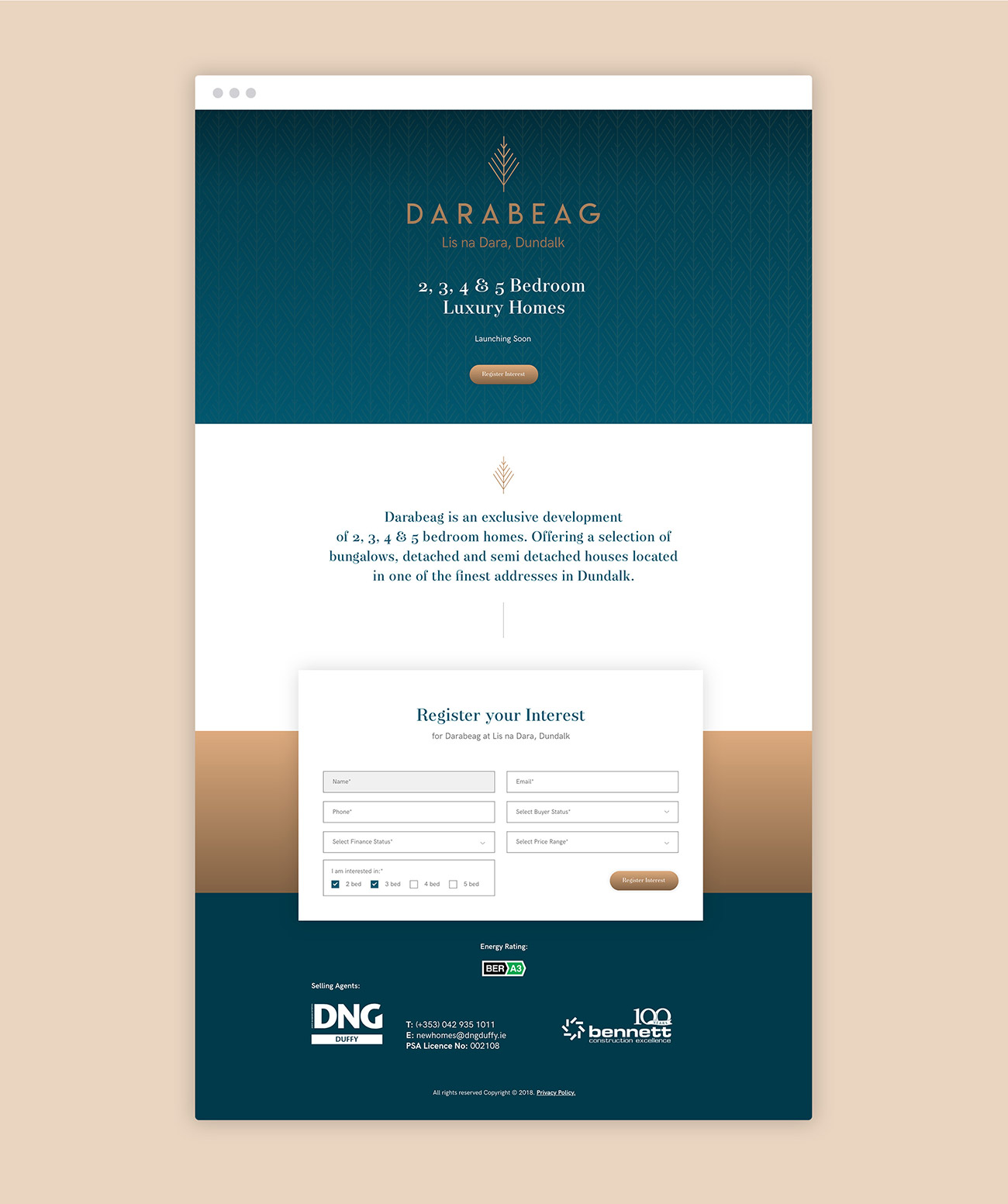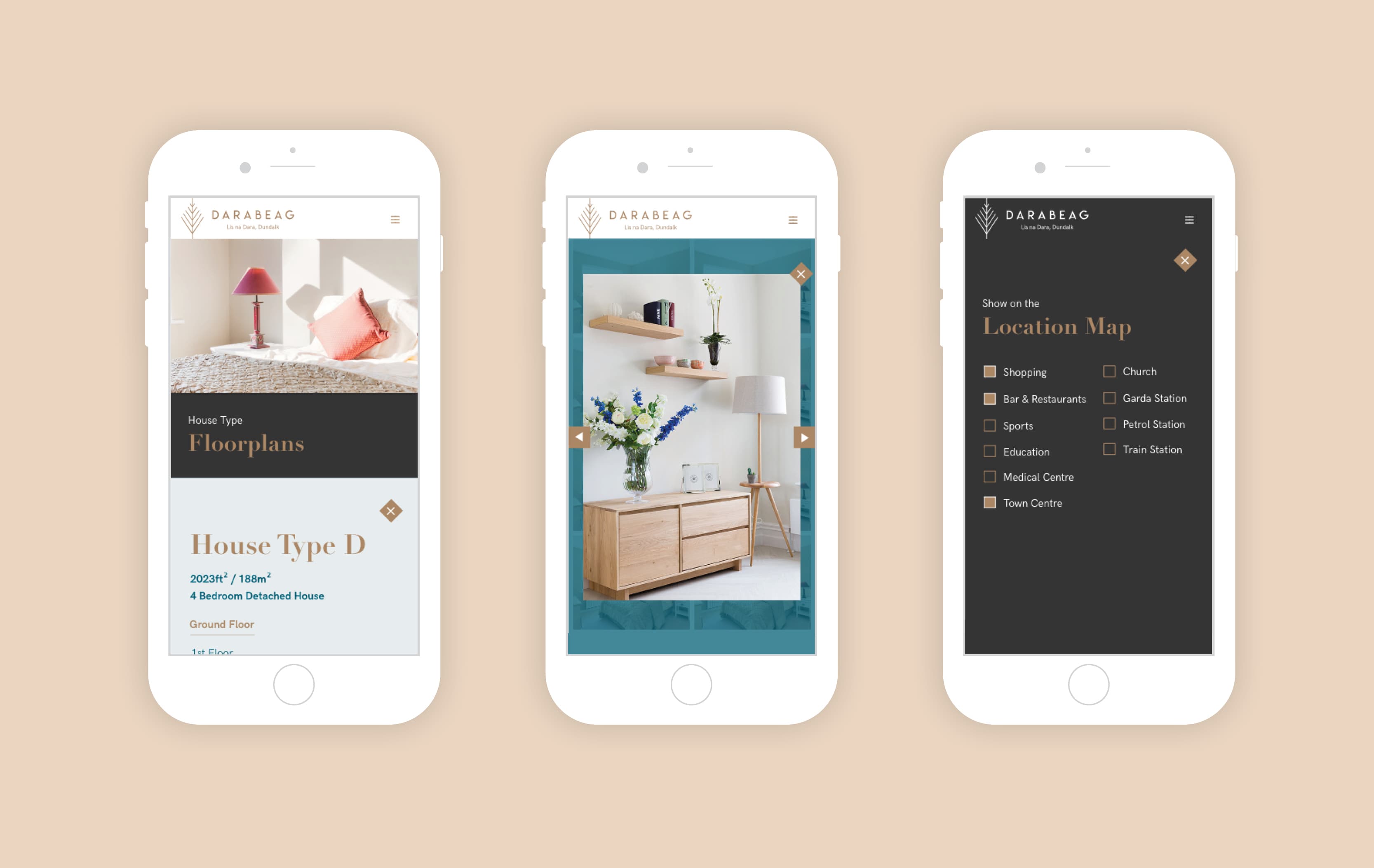 The existing area of Lis na Dara is well regarded locally and Idea worked to develop a name that would sit well with this. We wanted a name that would resonate with the Irish nature of the developments in the local area and would be well regarded by the local county council. We proposed Darabeag, Lis na Dara which reflected the smaller nature of this development. Once this had been agreed by all parties we then developed a distinctive brand, website, brochure and signage to communicate with potential purchasers. Darabeag was successfully launched to the market in April 2018.