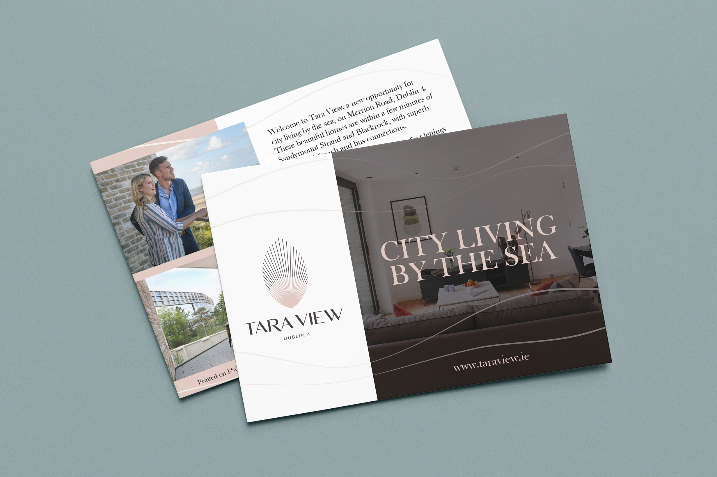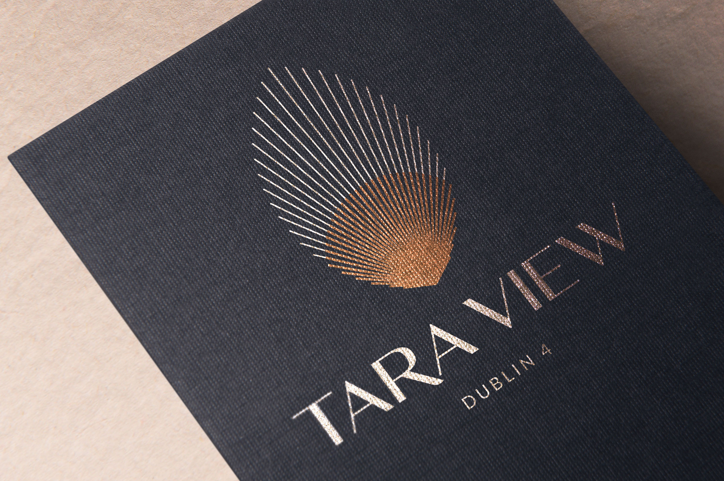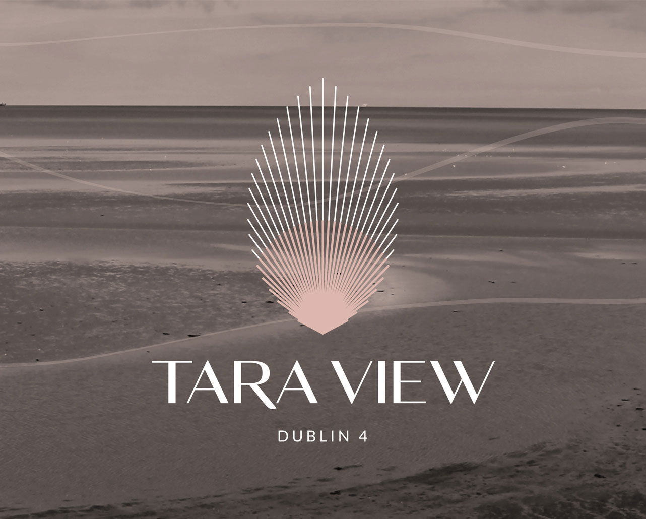 The inspiration for Tara View was taken from the stunning scapes that surround the development, from the sea at Sandymount to the Dublin Mountains of Wicklow. We wanted to design a symbol that captured the nature of these views and so created a device that could represent a seashell, a sunrise, a feather. What we created was an identity that felt more a piece of art than a logo symbol which feels entirely appropriate for a development of this quality in such a stunning setting of Dublin 4, city living by the sea.