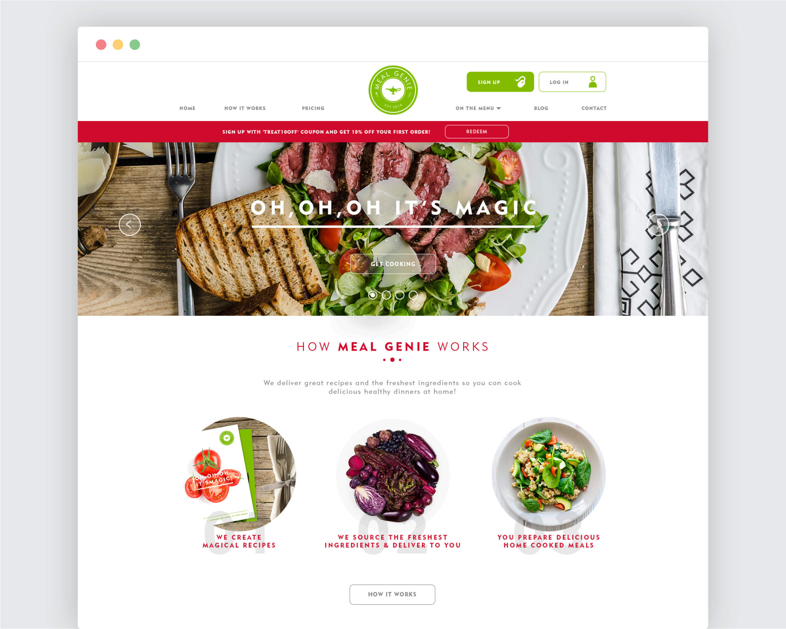 Idea worked on developing their name, brand and website to encourage sign-ups and to help Meal Genie stand out in the competitive meal prep market. We wanted to keep the design as fresh as their ingredients! The website is fully responsive, integrated with their social media and enables instant sign up to the Meal Genie service! Simply delicious!