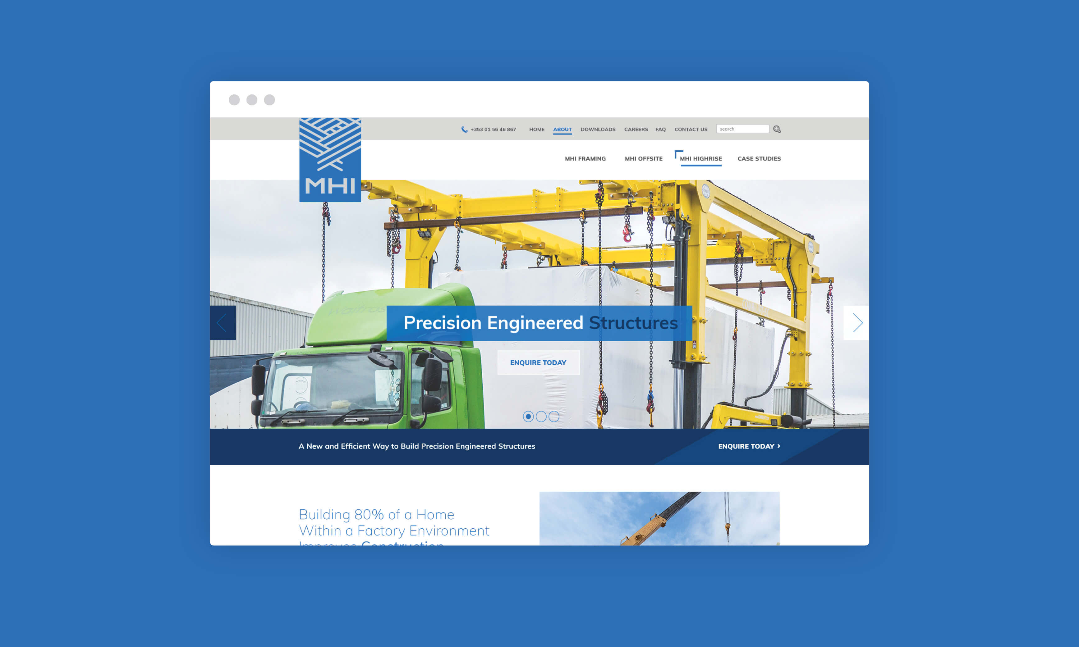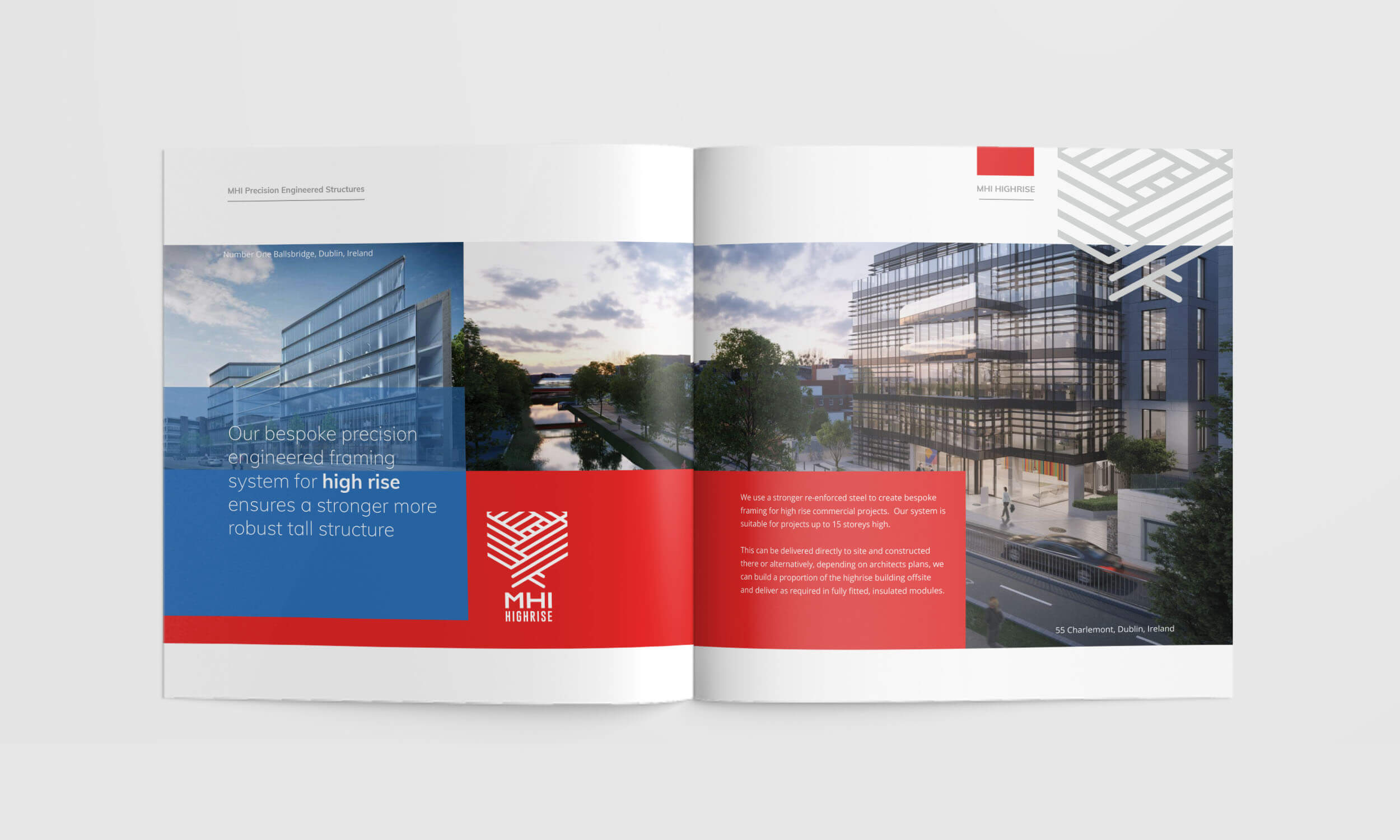 Modern Homes Ireland (MHI) builds 80% complete homes in a factory setting, delivering the units to the site where the developer completes the construction on-site. Additionally, they utilise superior technology and precision engineering usually associated with large super-factories in China, US and a handful of UK providers. This enables developers to have a completed home on-site within 3 weeks thus dramatically reducing costs and increasing build potential. Idea was contracted by the Directors of MHI to develop the narrative, tone and positioning of this ground-breaking new construction process through a new brand and a series of communication tools. We developed an engaging brand identity and brand rollout for MHI to be utilised internally and to their wider audiences in Ireland and the UK. This included a brochure, website, series of fact sheets, brand livery on vehicles, on-site signage, process explanatory videos and a series of technical templates for bid and tender documentation.