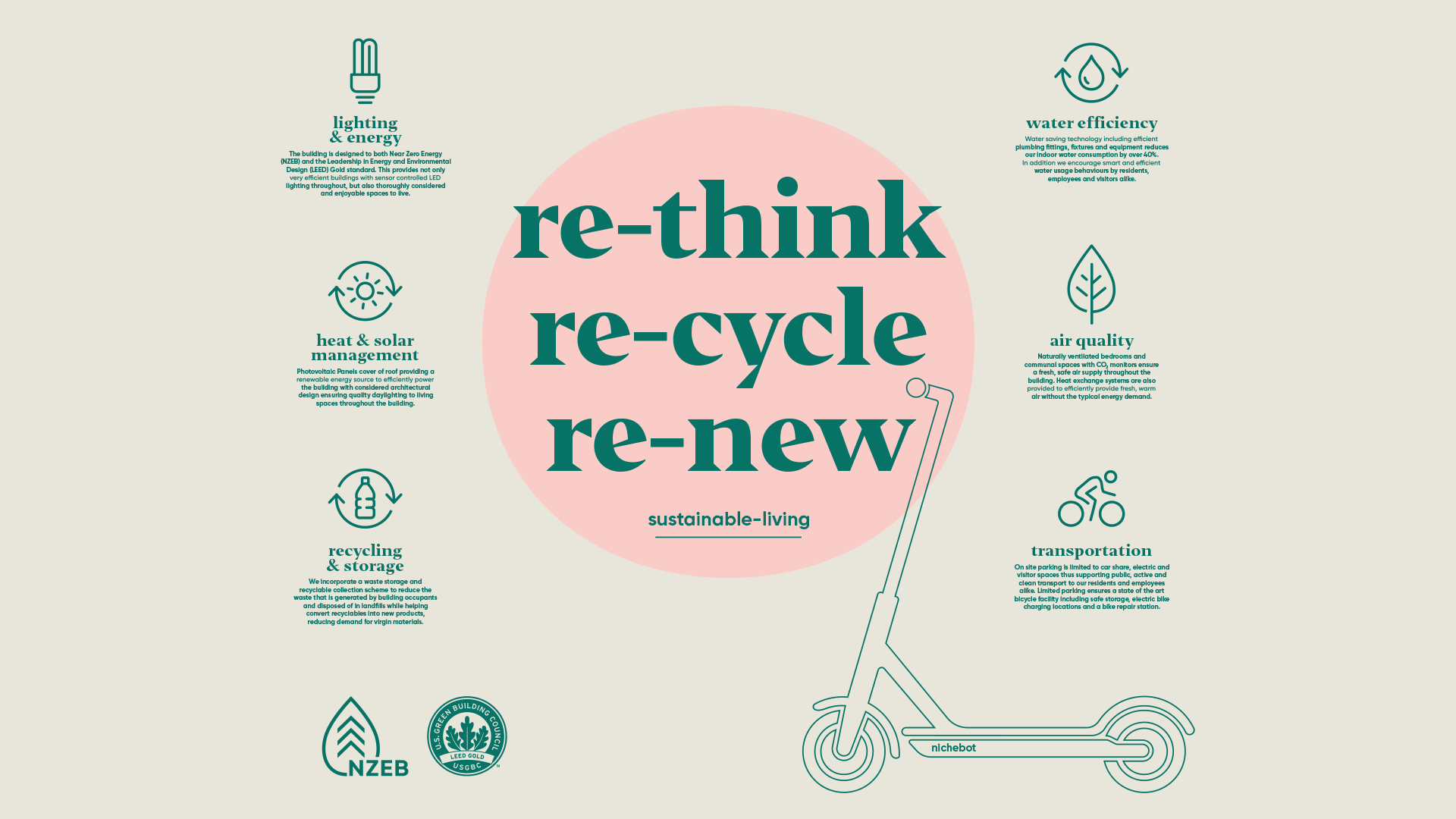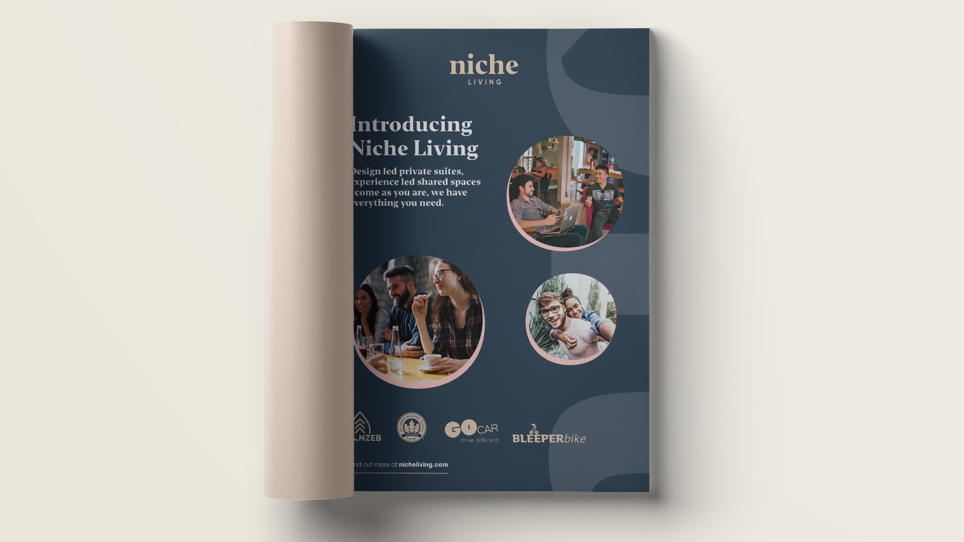 We worked alongside 21 Spaces to brand and fit out a marketing suite with infographics, animated presentations, video storytelling, and walk-in living space to capture the experience of living in a Niche Living apartment.