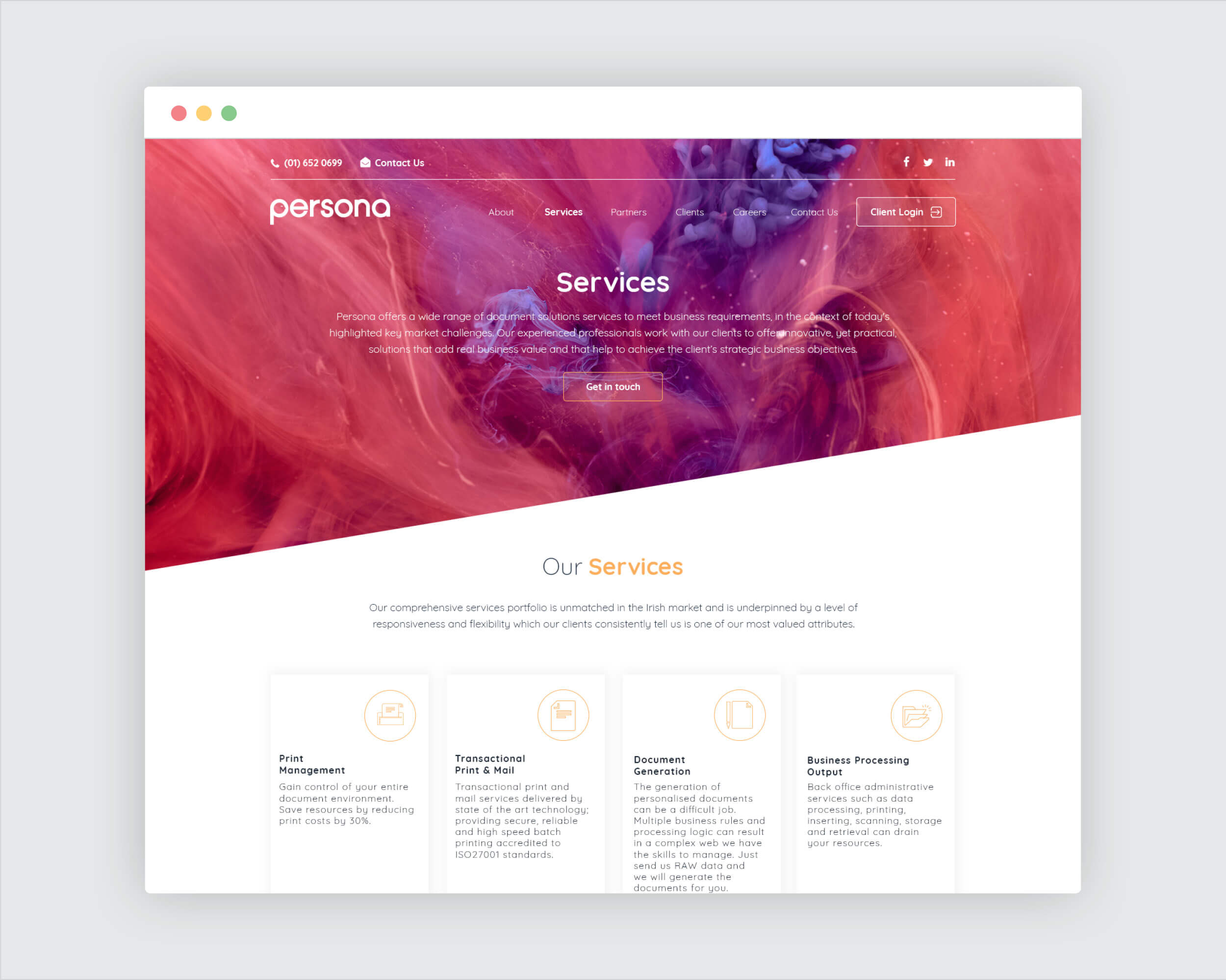 Idea loves to listen! Persona was formed in 1971, and aims to change the face of secured document solutions. They are proud to offer a unique, all-encompassing document management solution – providing a single source supplier for client documentation needs. They take care of each client’s communication requirements; Colour Print, Security Print, Transactional mail or e-documents, they have a “Persona” to fit the bill. They entrusted Idea with a digital rebrand to bring their company into the next phase of their exciting business and to bring their branding up to speed on their business offerings. We listened to their business needs and, armed with their brief, set to work on their digital rebrand.