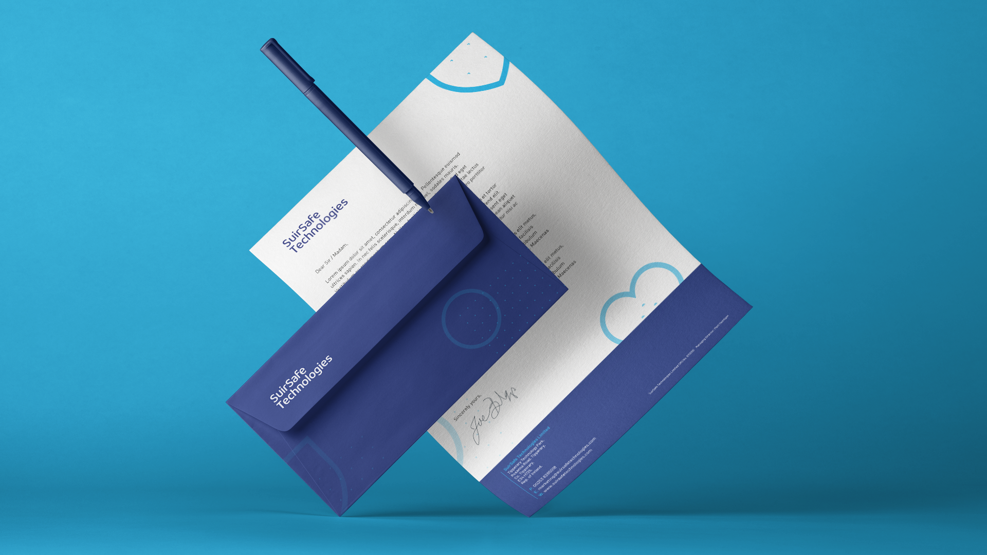 The identity we developed reflects the brand’s reliability and trustworthiness and the colour palette brings to life the focused, professional and forward-thinking personality of Suirsafe Technologies.