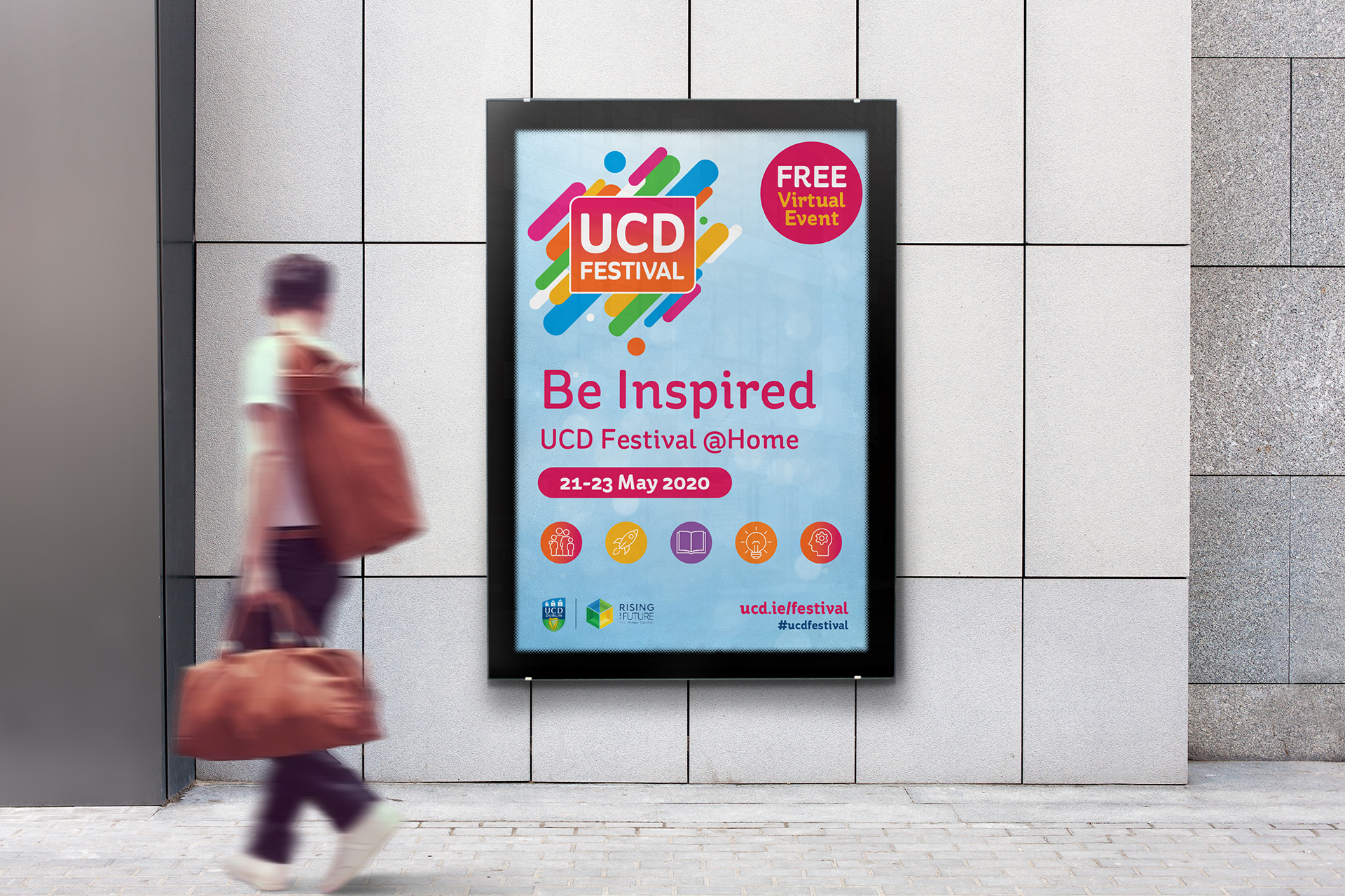 The UCD Festival has been very successful over the past few years and the UCD team were looking for a brand refresh to give this year’s festival a vibrant new look and that would showcase the festival for the years to come.