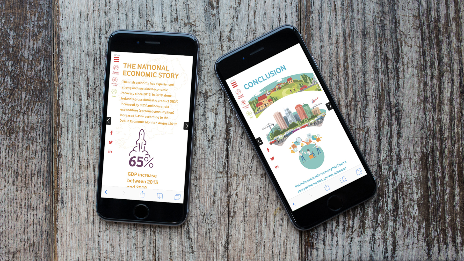 All materials were ready for the launch event on October 1st 2019 at The Alex Hotel, Dublin with hosted by main speakers Jim Power, Vodafone Director of Enterprise Regina Moran, and panel speakers: Danny McCoy of IBEC, Adrienne Harrington of Ludgate, Denis Creighton of Fexco Group, Architect Dermot Bannon and Mike Beary of Amazon, with the printed and digital reports providing a fantastic visual aid.