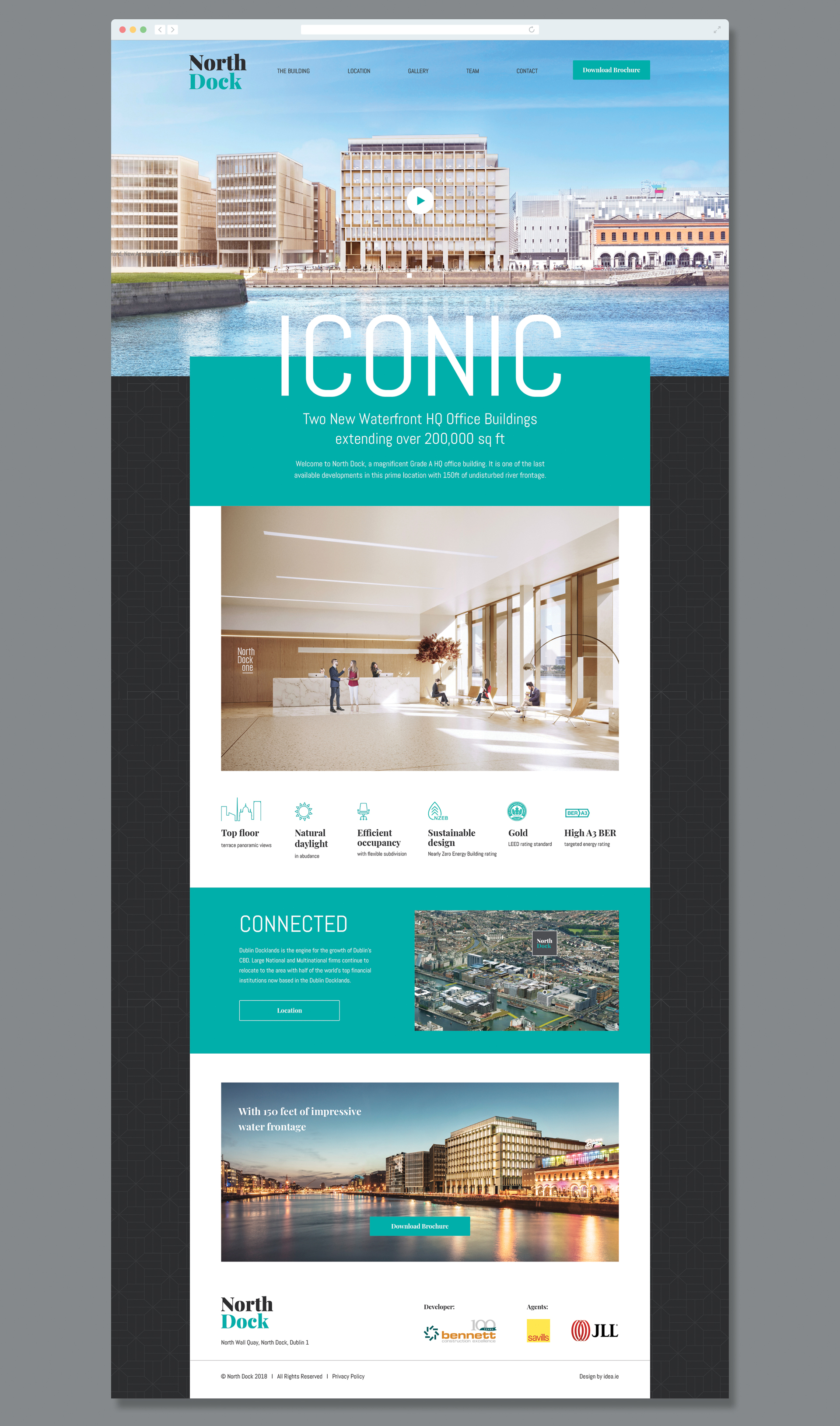 North Dock offers gold-standard office space over 9 floors with secure semi-basement parking, cycle bays and shower/changing rooms. The buildings optimise cost-efficiencies through many sustainable features including solar shading, environmentally friendly mechanical and electrical systems and is completed with a Sedum ‘Green’ Roof. The building can be split into two distinct blocks each with their own dedicated entrance.